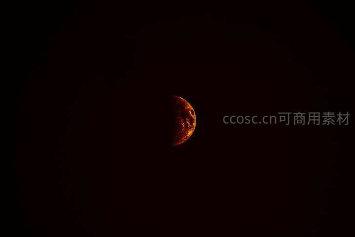 一轮血红色的月亮在漆黑的夜空中若隐若现,散发着神秘而庄严的光芒,仿佛宇宙深处的古老秘密。