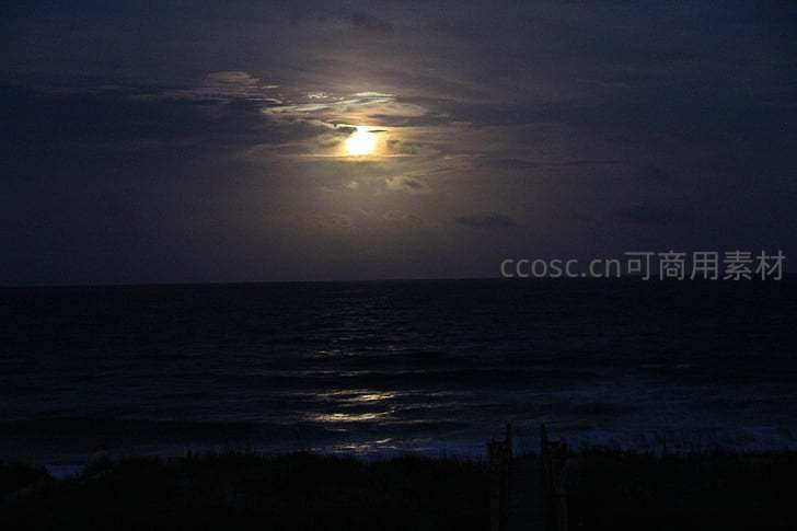 皎洁月光刺破薄云,温柔洒在无垠海面,粼粼波光与深邃夜空交织出静谧而神秘的画卷。