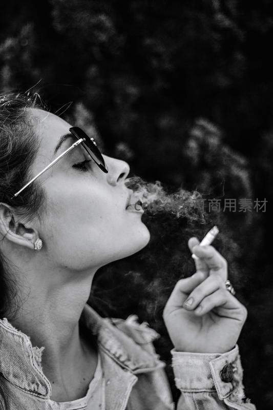 墨镜女子烟雾缭绕