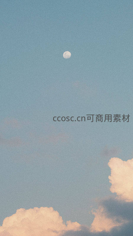 一轮皎洁的满月高悬于清澈的蓝天下,几朵蓬松的白云悠然飘过,营造出清新、宁静而开阔的视觉感受。