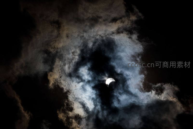 乌云翻涌的夜空里,一弯残月在云隙中忽明忽暗,仿佛宇宙深处的秘密,散发着幽远而神秘的冷冽光芒。