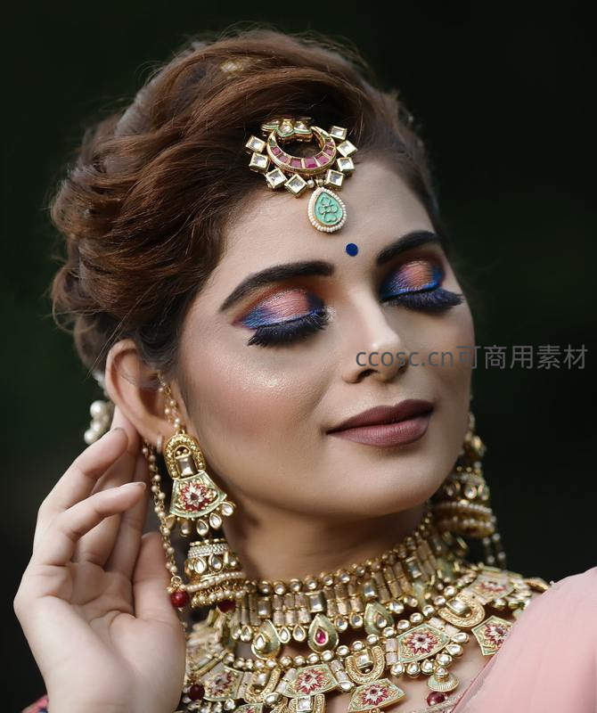 印度新娘佩戴华丽传统珠宝妆容