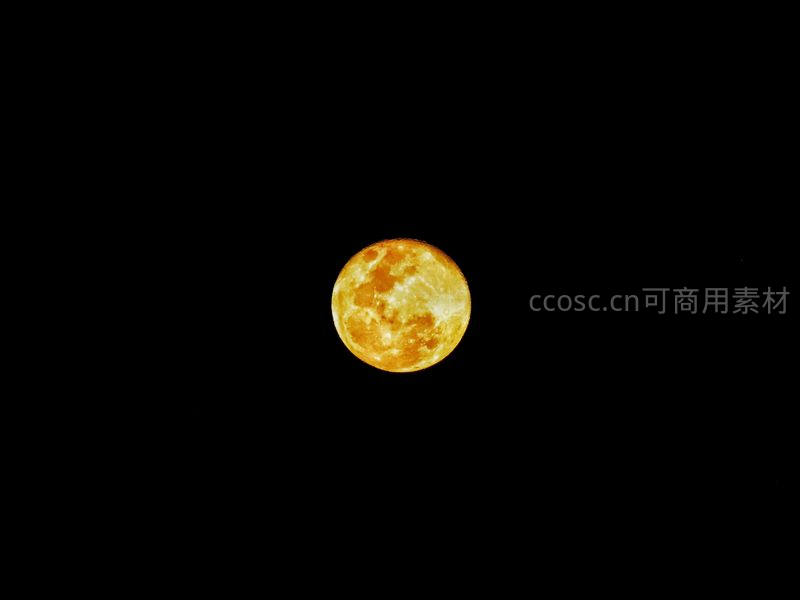 一轮橙红色的满月在纯黑的夜空中独自闪耀,色彩浓郁而温暖,仿佛燃烧着宇宙深处的神秘能量。
