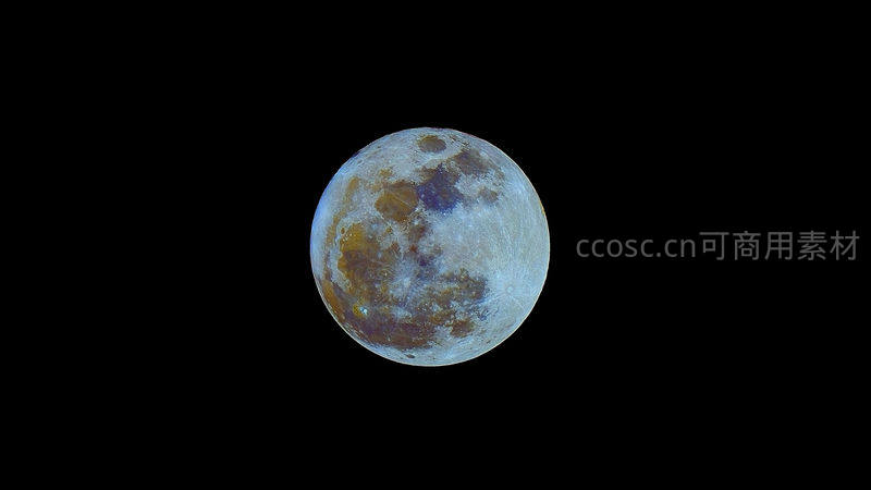 经过特殊色彩处理的月球图像,呈现出蓝、棕、紫交织的奇幻地貌,揭示了其表面复杂而迷人的地质结构。