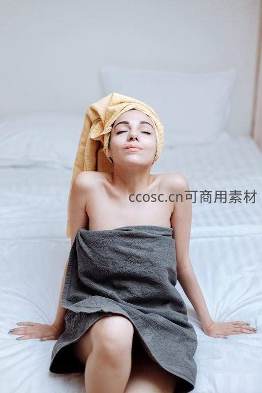 浴后裹毛巾床上放松享受时光