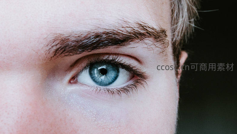 湛蓝眼眸的男性特写,眉毛浓密富有神采