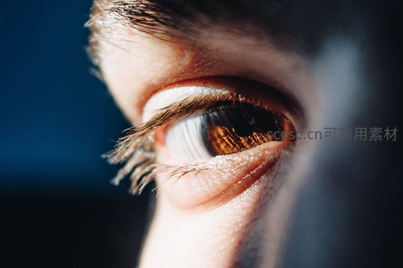 通过微距镜头捕捉眼部细节,展现睫毛的纤毫毕现与虹膜的纹理光泽,皮肤质感清晰,光影对比强烈,传递出专注而深邃的情感。