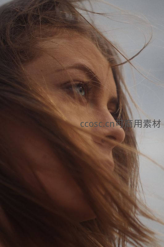 风中飞扬发丝的侧脸凝望
