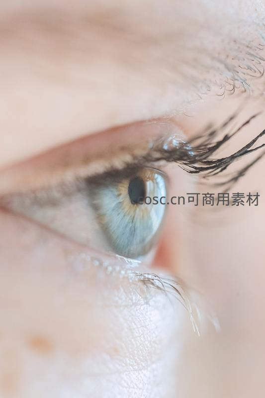 浅蓝色眼睛微距,睫毛纤长卷翘