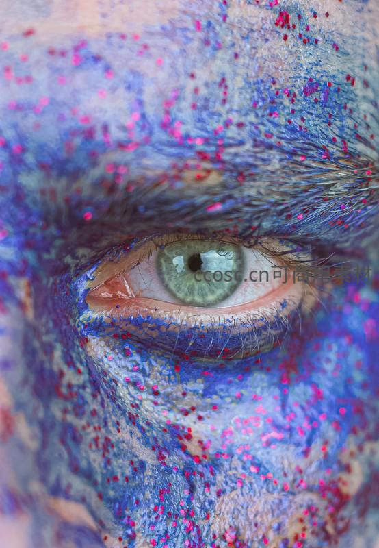 彩绘眼妆特写,蓝粉闪粉梦幻迷离