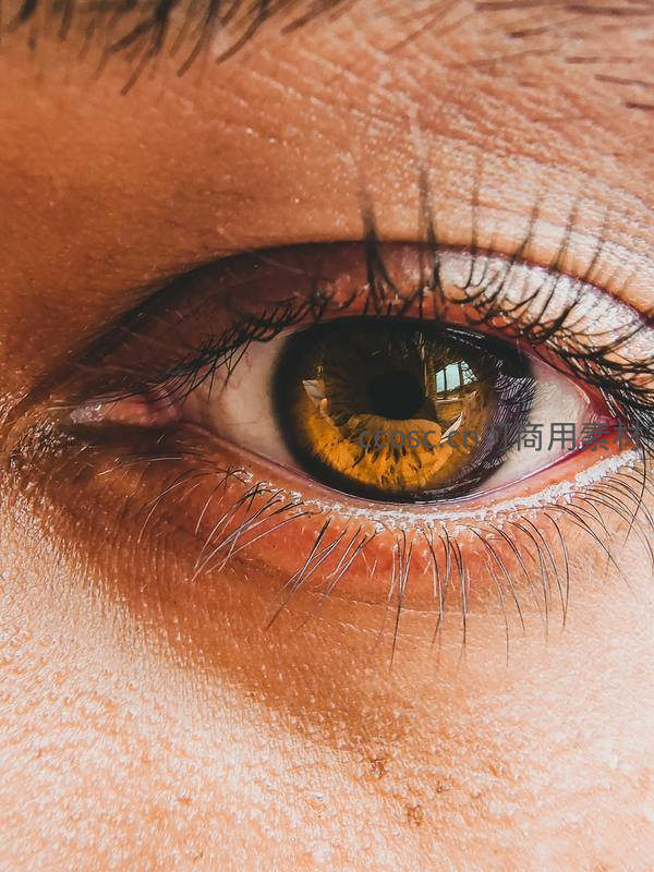 琥珀色瞳孔的微距特写,睫毛根根分明