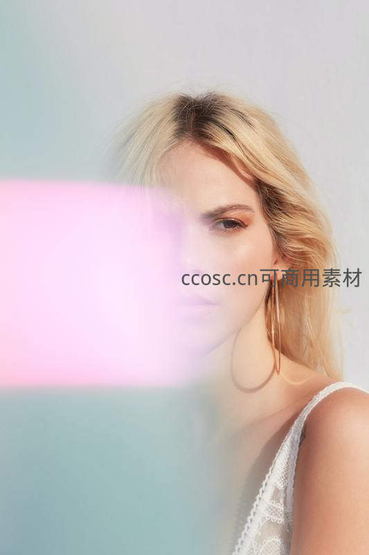 柔光下的金发女郎,耳环与蕾丝勾勒优雅轮廓