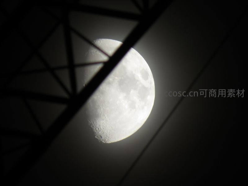 钢架剪影间的月轮,工业结构下的温柔光辉