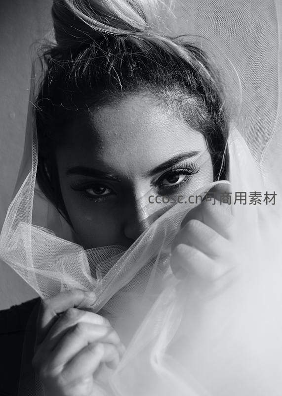 黑白纱幔遮面的神秘新娘眼神