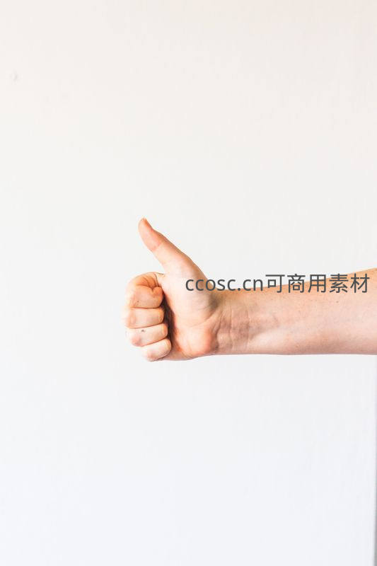一只手臂在纯白背景下竖起大拇指,动作简洁有力,传递肯定、鼓励与积极情绪,适合作为通用正面表达符号使用。