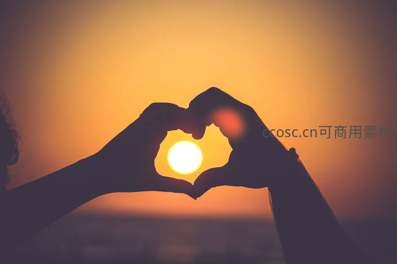 在绚烂的夕阳背景下,一双双手巧妙组成心形,将落日温柔框入其中,营造浪漫温馨氛围,象征爱与美好时刻。