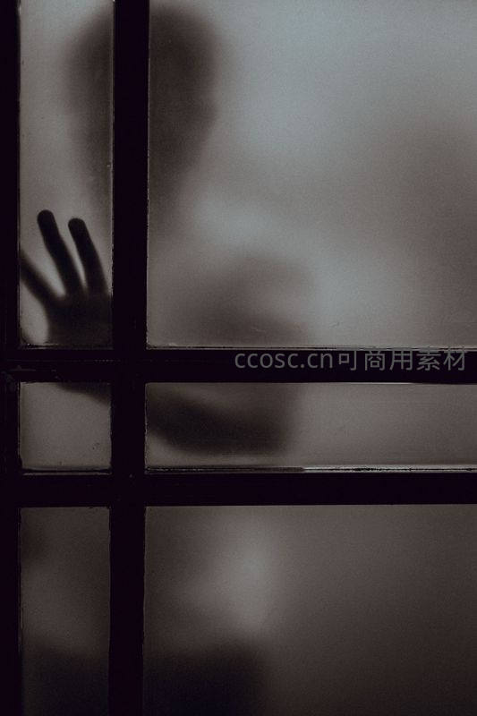 朦胧窗后,手掌轻贴玻璃的神秘剪影