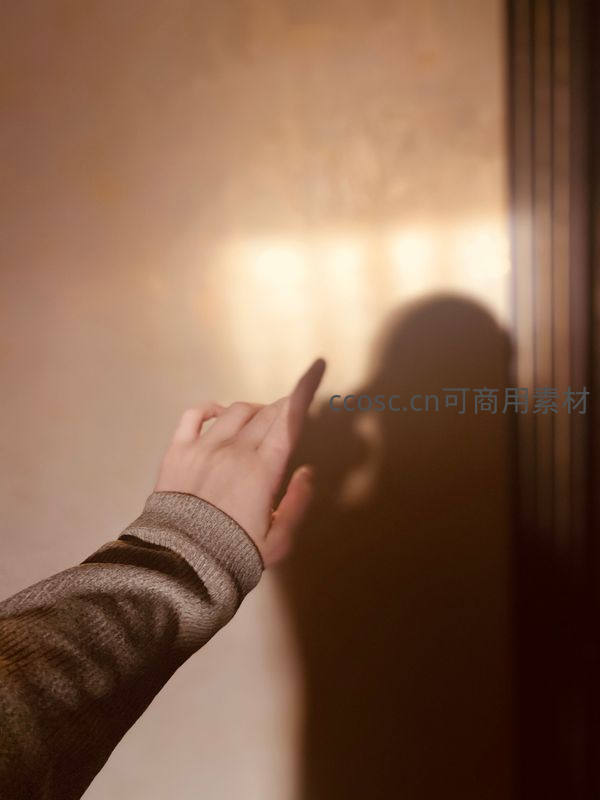 指尖轻触墙影,暖光下的静谧瞬间
