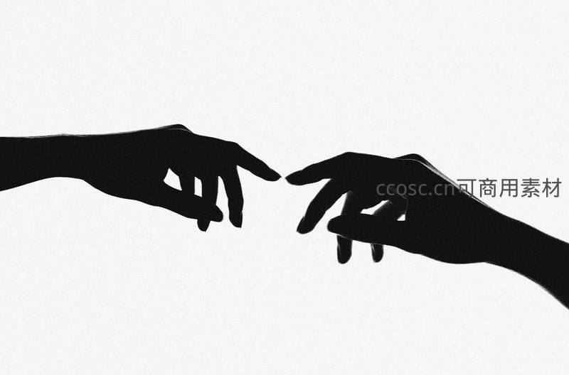 黑白剪影中指尖即将相触的经典瞬间