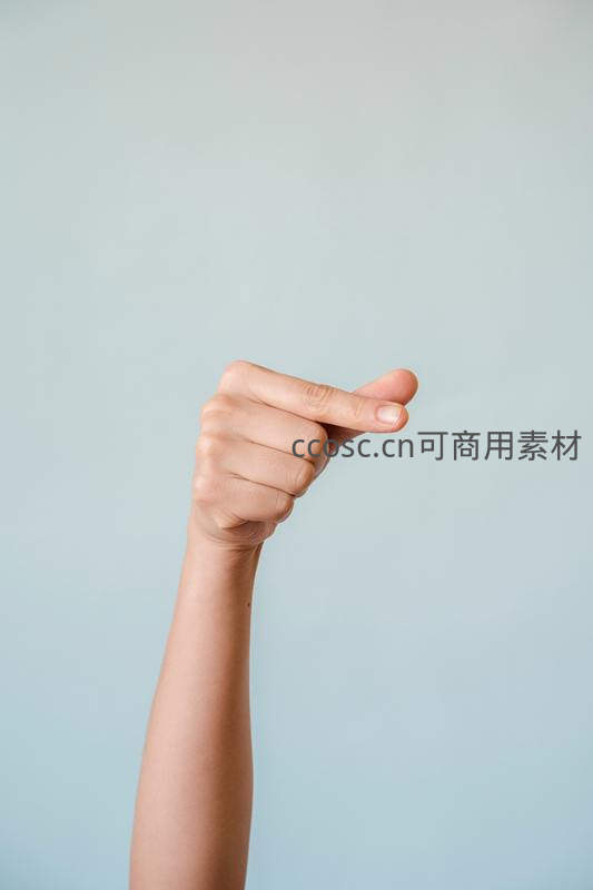 单手比出小指勾勾手势,简约背景下的俏皮互动