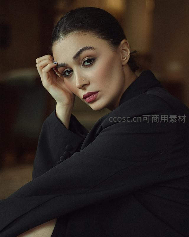 黑衣女子优雅侧颜特写