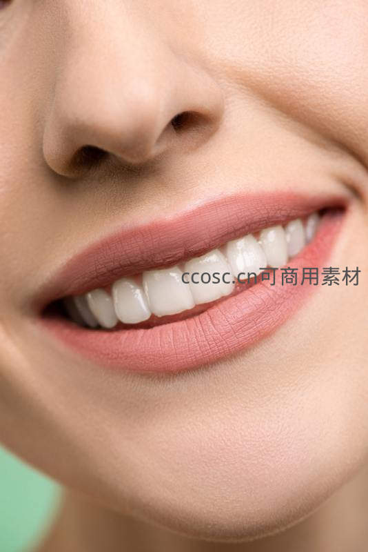 灿烂笑容特写,洁白牙齿与柔润双唇