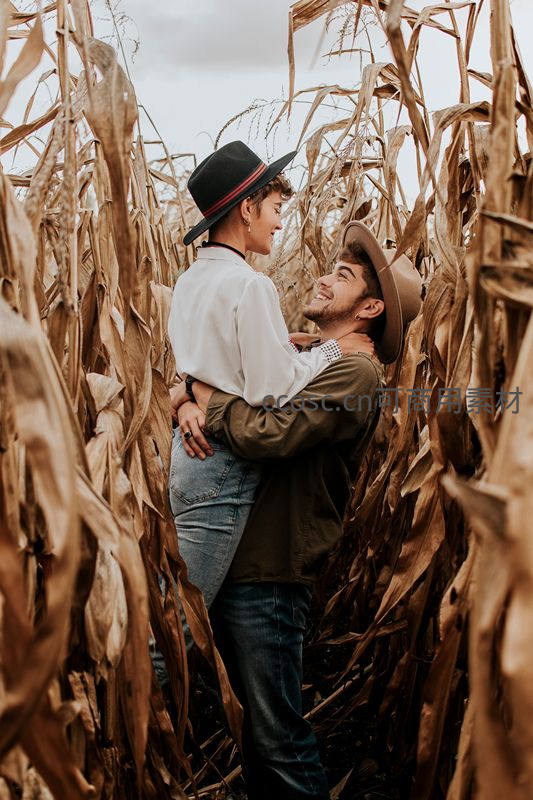 玉米田中的浪漫情侣拥抱