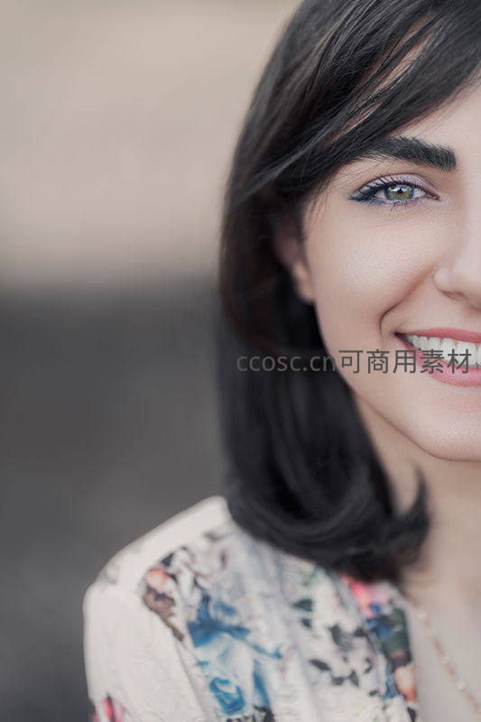 微笑女子特写,眼神温柔动人