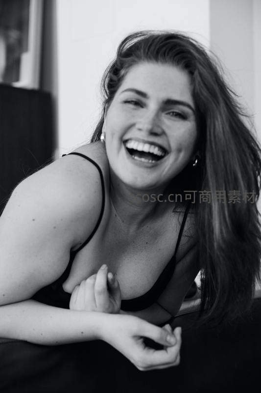 黑白照片捕捉到一位女子毫无保留的大笑瞬间,她的神情真挚而富有感染力,传递出纯粹的快乐与生命力。