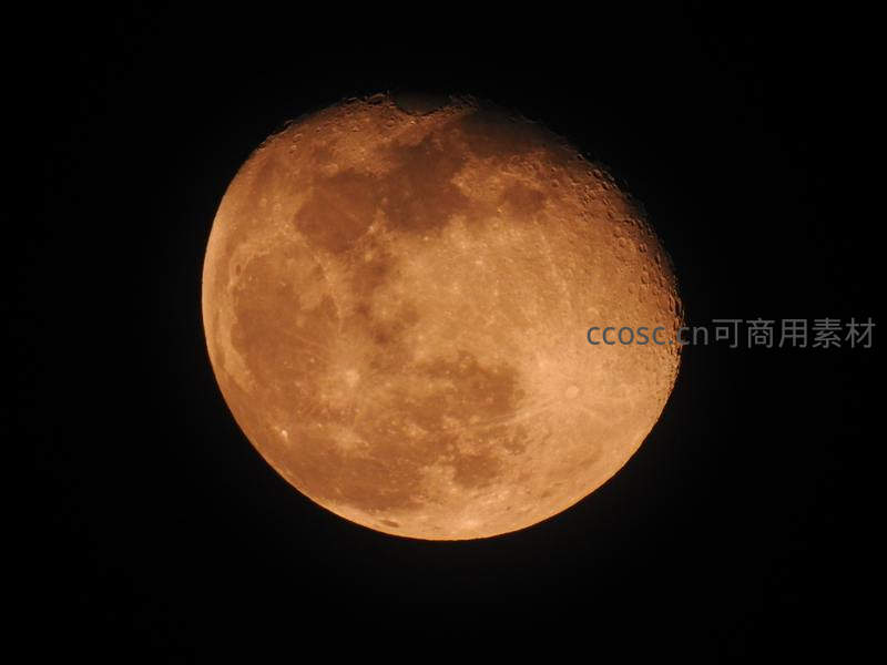 橙红满月悬于夜空,表面环形山清晰可见
