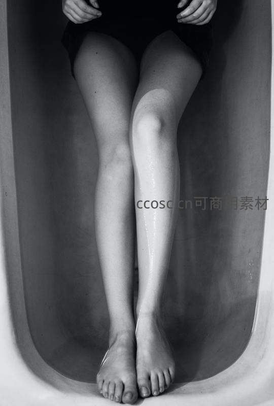 黑白光影下的浴缸腿部特写