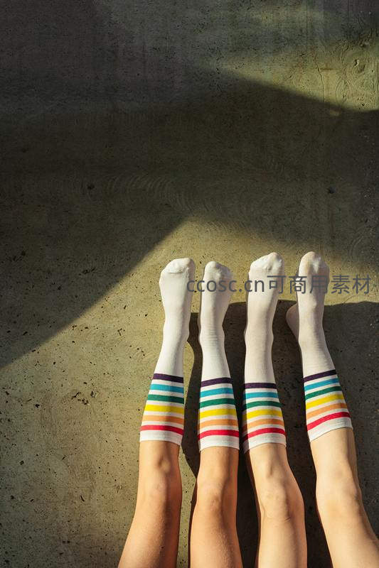 四双彩虹条纹袜的阳光合影