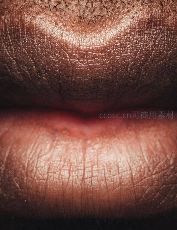 近距离聚焦唇部肌肤,清晰呈现唇纹与毛发细节,在暖调灯光下凸显自然质感,传递真实而富有生命力的视觉体验。