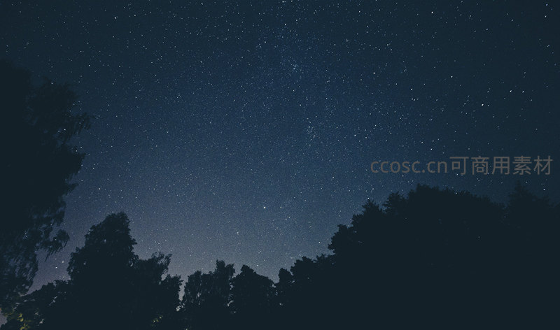 茂密树冠的剪影框住浩瀚星空,无数星辰如钻石般洒落在深蓝色天幕上,营造出神秘而宁静的森林夜景。