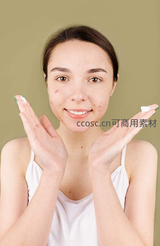 一位面带微笑的年轻女性,双手捧着护肤霜,展示其用于面部护理的场景,传达自然与健康的护肤理念。
