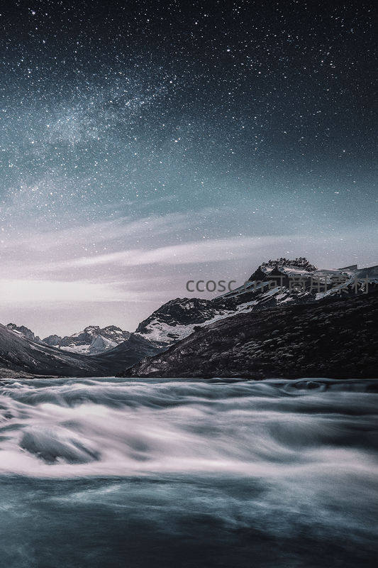 静谧的高山湖泊在夜色中流淌,雪峰倒映于水面,头顶是浩瀚无垠、繁星点点的银河,营造出梦幻般的宇宙之境。
