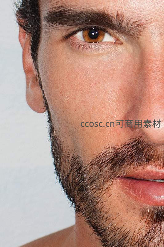 这张微距特写聚焦于男性棕色眼眸和细腻胡茬,展现肌肤质感与自然光泽,传递出健康与阳刚之美。