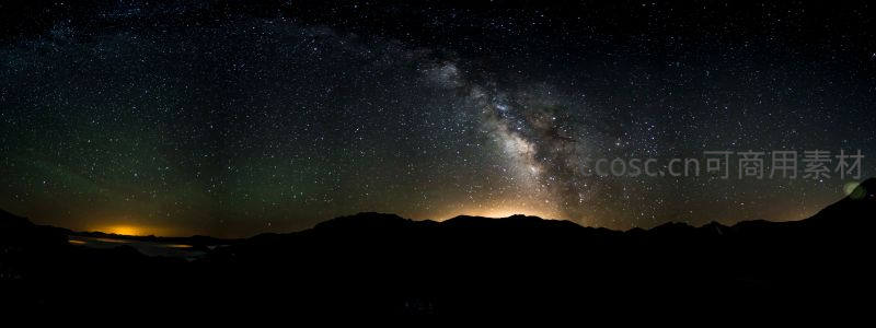 广角镜头捕捉到银河如光带般横贯整个夜空,山峦剪影勾勒地平线,展现宇宙的浩瀚无垠。