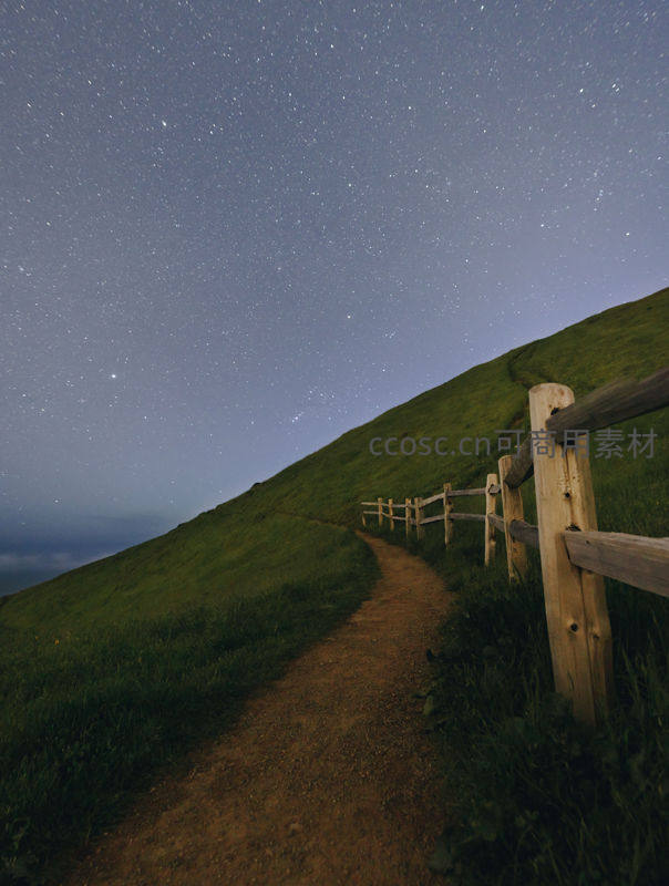 星光小径蜿蜒山丘,木栅栏旁通往梦想之境
