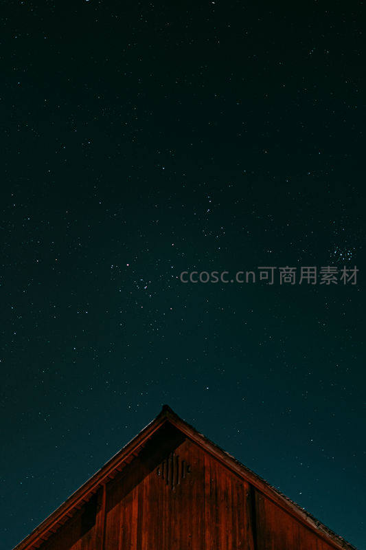 木屋尖顶仰望满天星斗静谧夜色如画