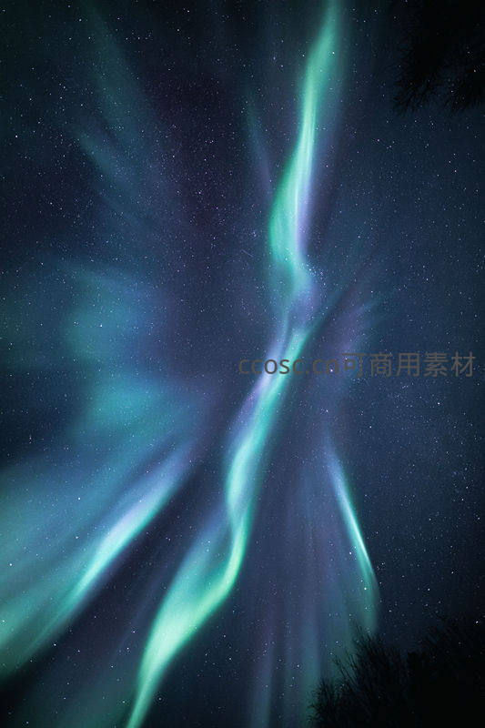 青绿色的极光如丝绸般从深邃夜空垂落,与点点繁星交织,展现出大自然鬼斧神工的流动之美。
