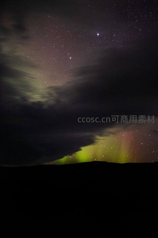 极光穿透云层,星河璀璨夜空