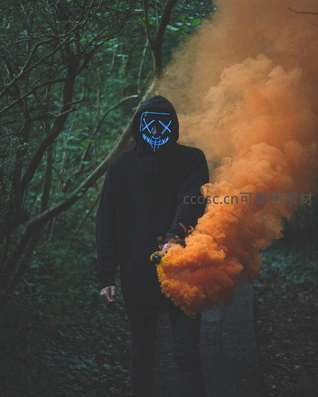 森林中持橙烟雾弹的发光面具人