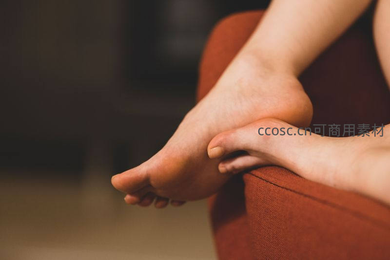 沙发上的放松足部特写
