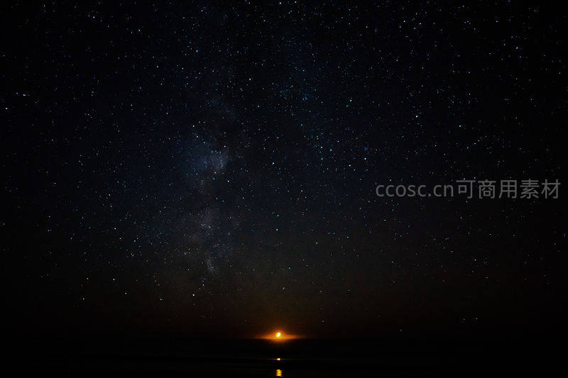 海平线上的银河与孤灯遥相呼应