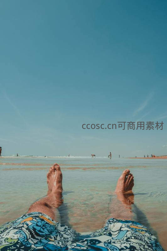 浅滩泡脚仰望晴空万里无云