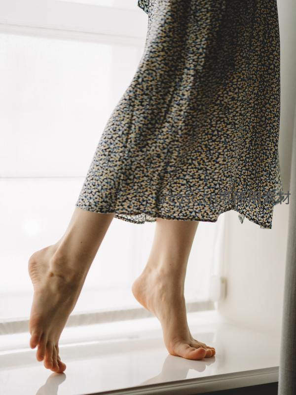 窗台上的碎花裙与赤足,阳光洒落的慵懒午后