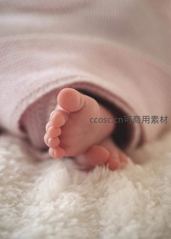 婴儿粉嫩小脚丫特写,柔软毛毯衬托温馨