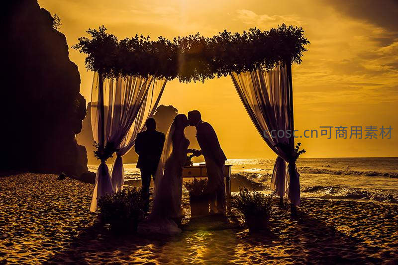 海滩婚礼剪影浪漫时刻