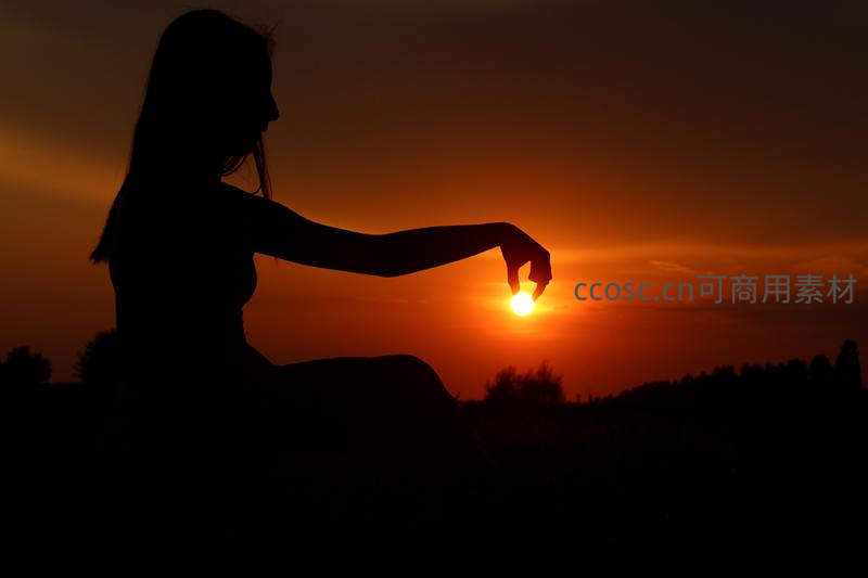 剪影少女手托落日余晖